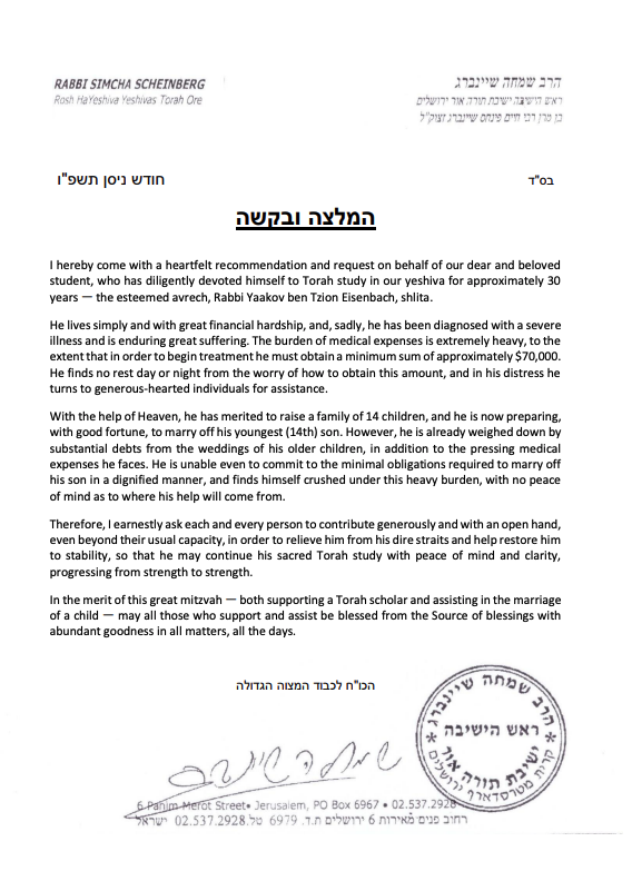 A father of 14 children is battling a serious illness and cannot afford his overwhelming medical expenses. Now, his son is engaged — but the family has no means to make a wedding. Please help this chassan get married with dignity and support the family during this difficult time.