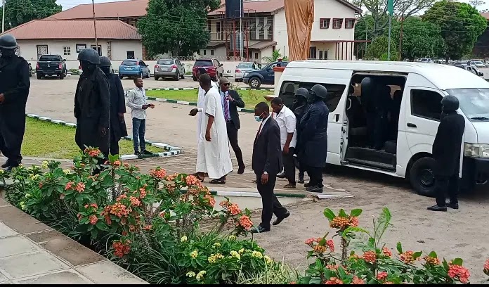 The suspects, who were arrested by operatives of the Department of State Services (DSS), arrived at the court premises at about 9 a.m. under heavy security presence.