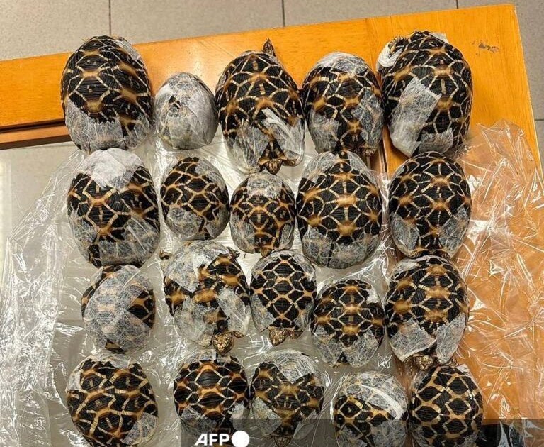 Thai authorities have arrested a 19-year-old Taiwanese woman at Bangkok’s Suvarnabhumi International Airport after finding 30 protected Indian Star tortoises taped to her body.