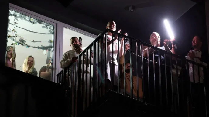 Hundreds of guests in black tie in the ballroom took cover under tables and later made their way into the hotel lobby and then outdoors as the event was postponed.
